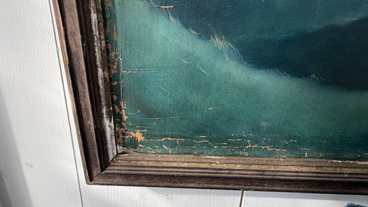 Large Antique Oil on Canvas. Ship at Sail