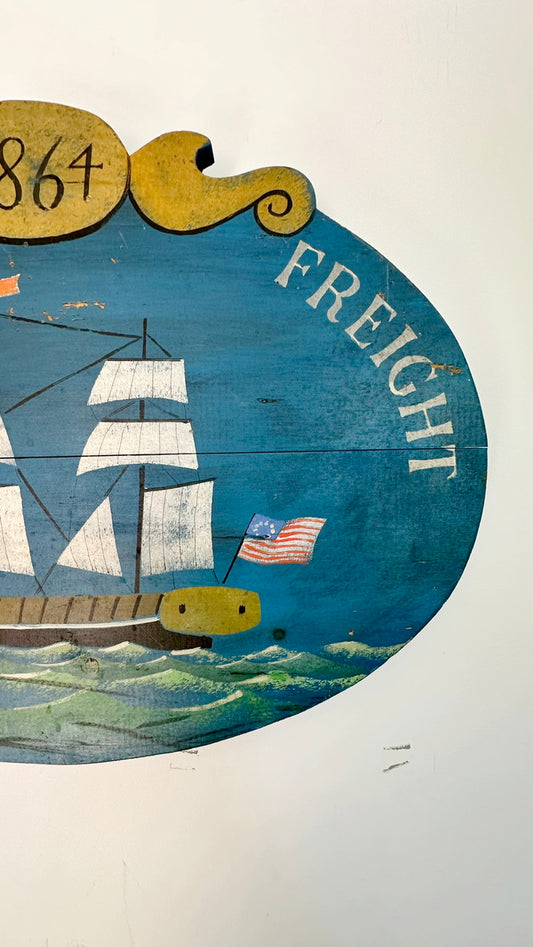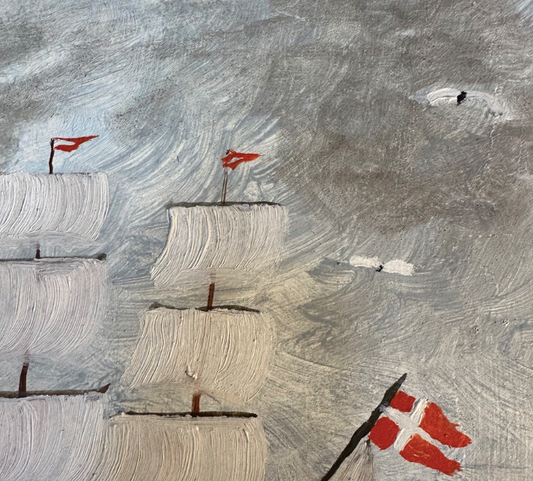 Folk Art Style Painting of a Frigate Ship Under Sail