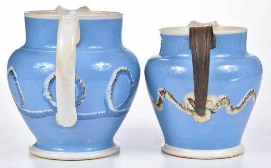Rare English Mochaware Earthworm Pitchers, 2 available, 19th Century
