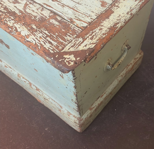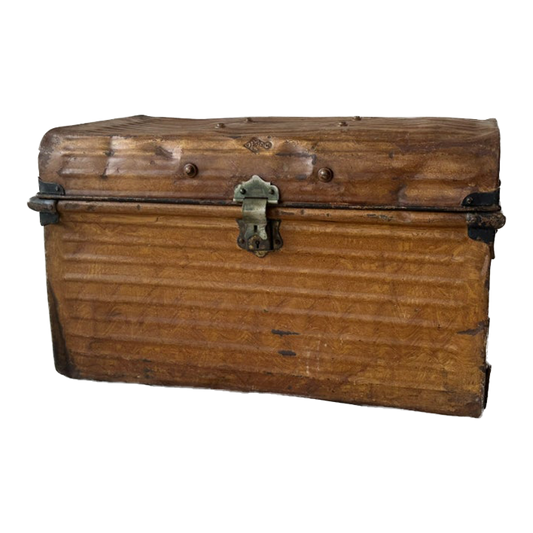 Early 20th Century English Metal Travelling Trunk With Original Faux Bois Painted Finish