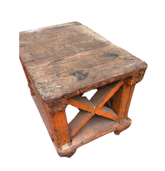 Wonderful Vintage Factory Trolley on Wheels in old Bright orange paint