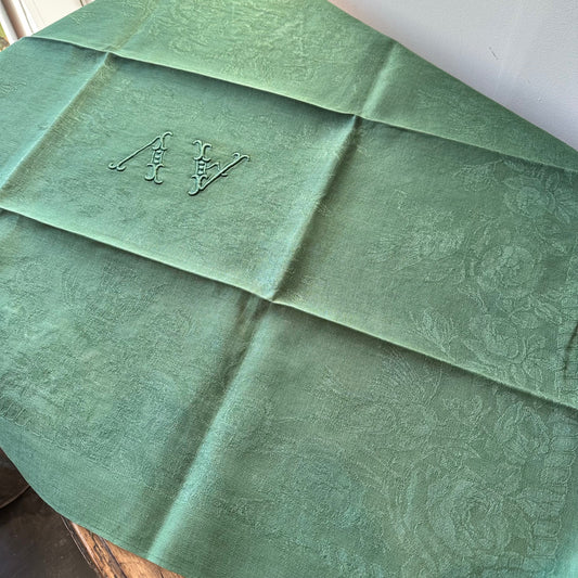 French Mid 19th Century Damask Linen Napkins in Green- Set of 4