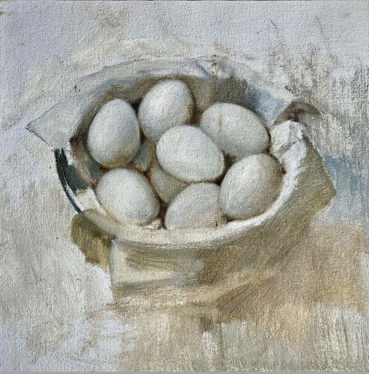 Still Life Painting of Eggs, unsigned, mid 20th Century