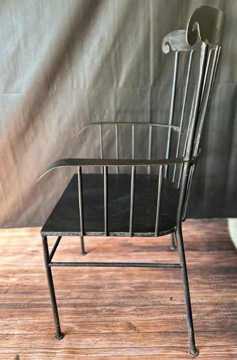 Set of 4 Black Painted Windsor Style Iron Armchairs