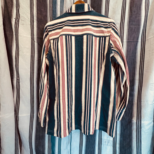Blue and White Striped Cotton Chore Shirt, Vintage