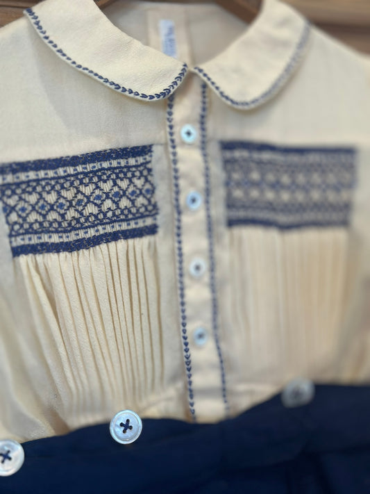 English Baby Romper in Beautiful Blue and White, 12 months+