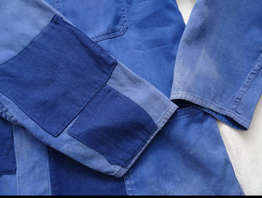 Vintage French Work Jacket with Patches in Indigo and French Blue