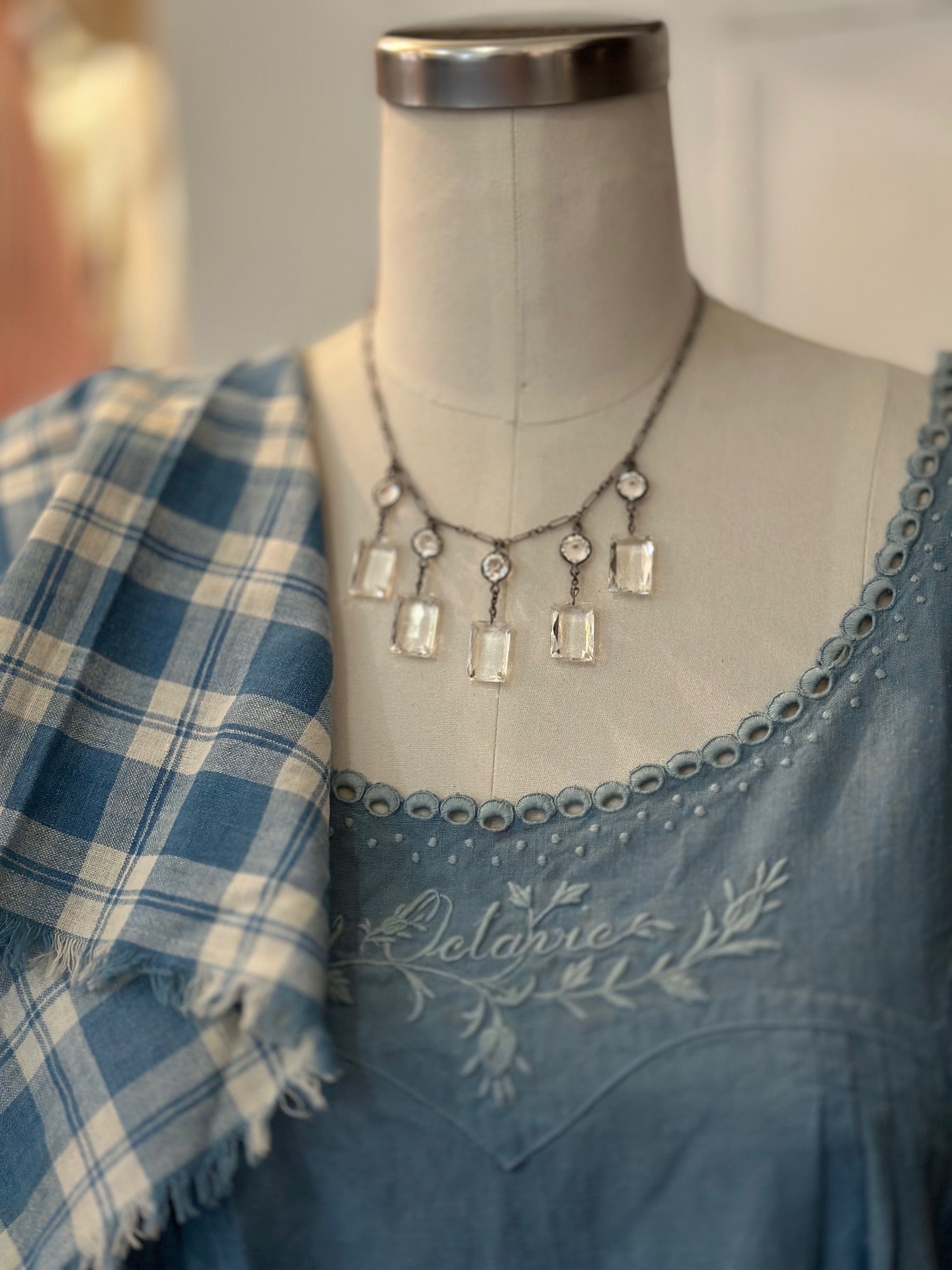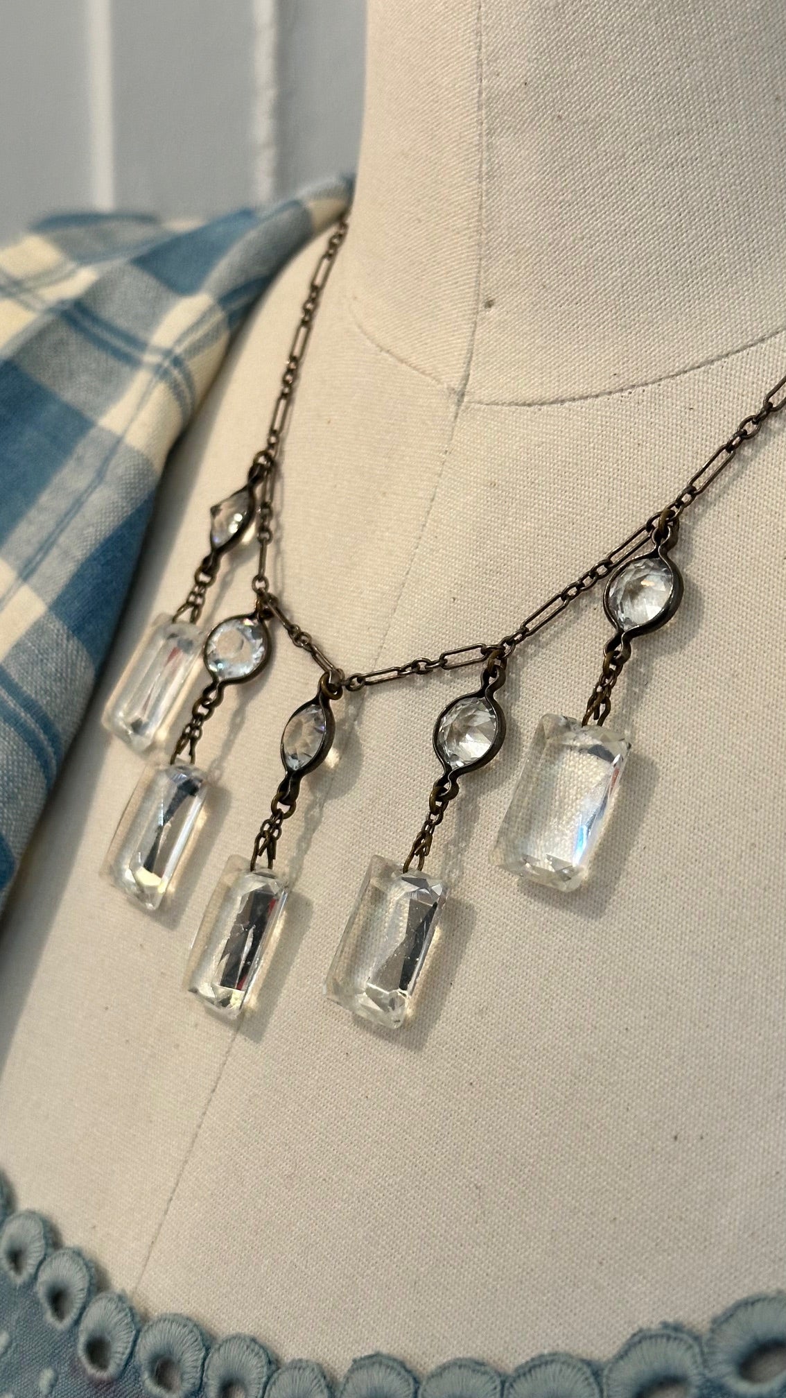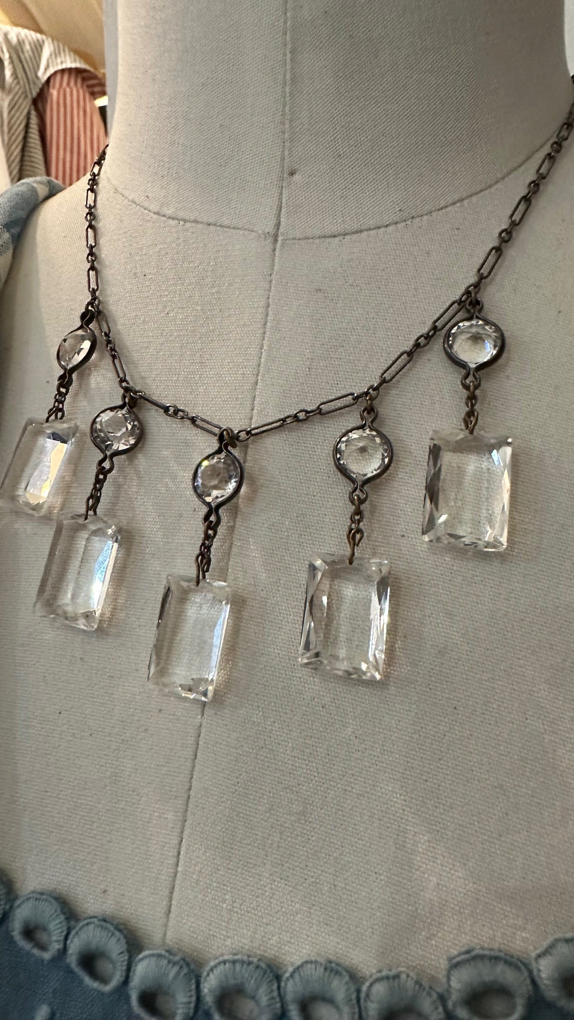 Delicate Crystal Necklace with 5 drops on single silver strand. French c 1940