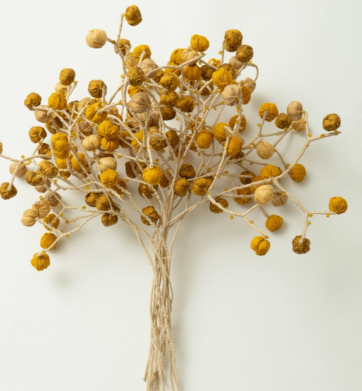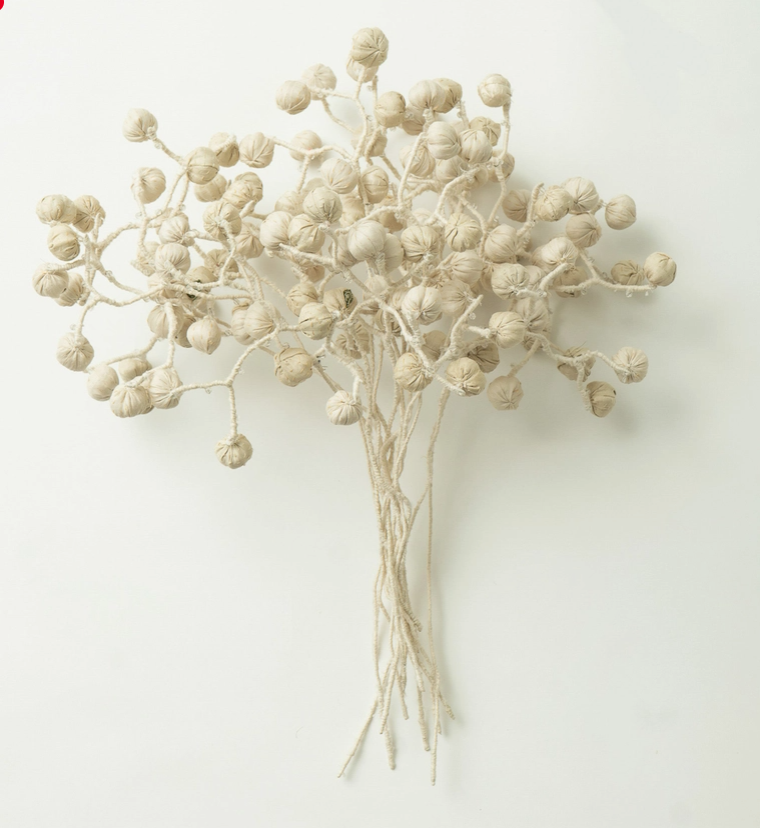 Designed by Japanese artist Mieko, in NY - bouquet of cotton flowers, Sculpture, faux flowers display, malleable cotton stems, with hand sewn and twisted cotton "Balls"
