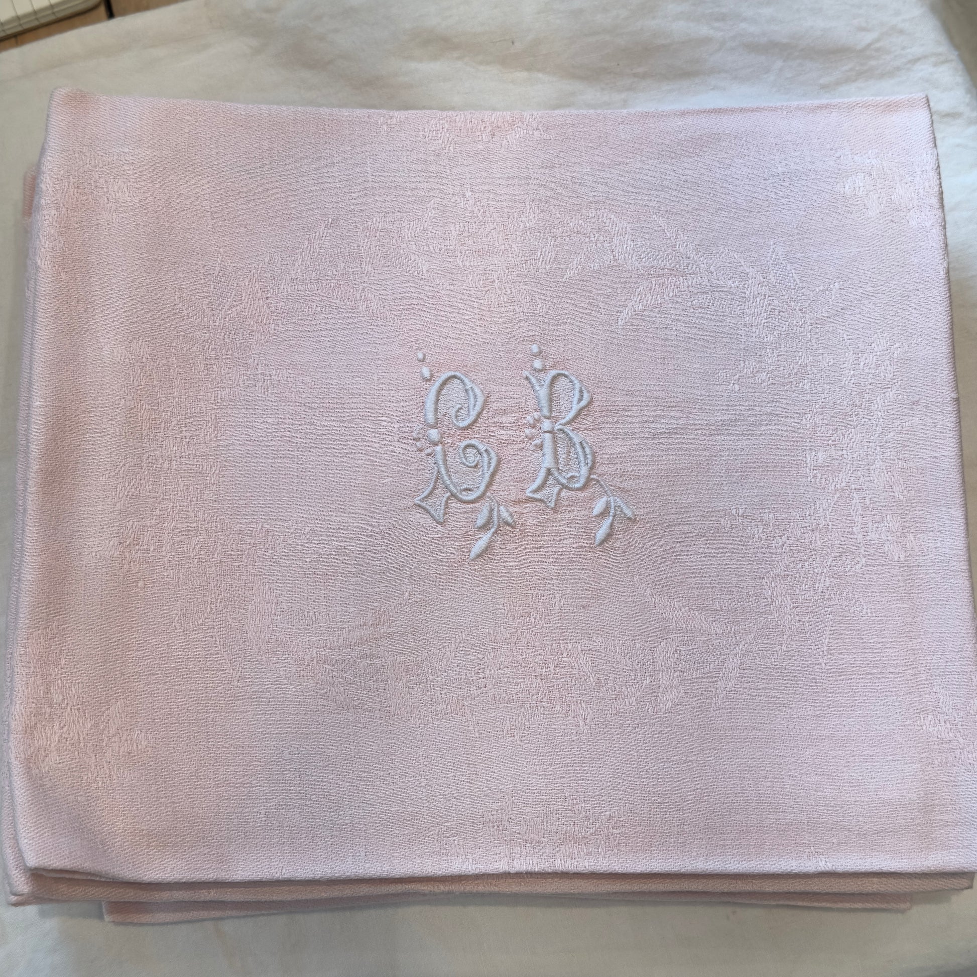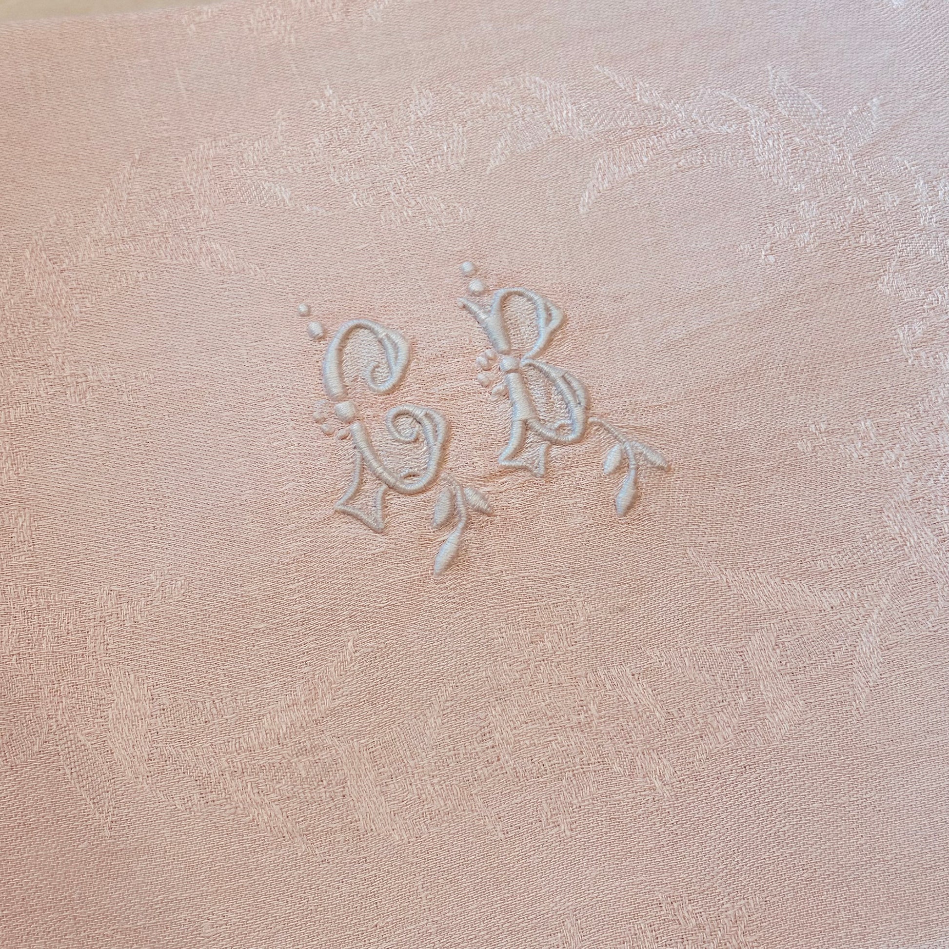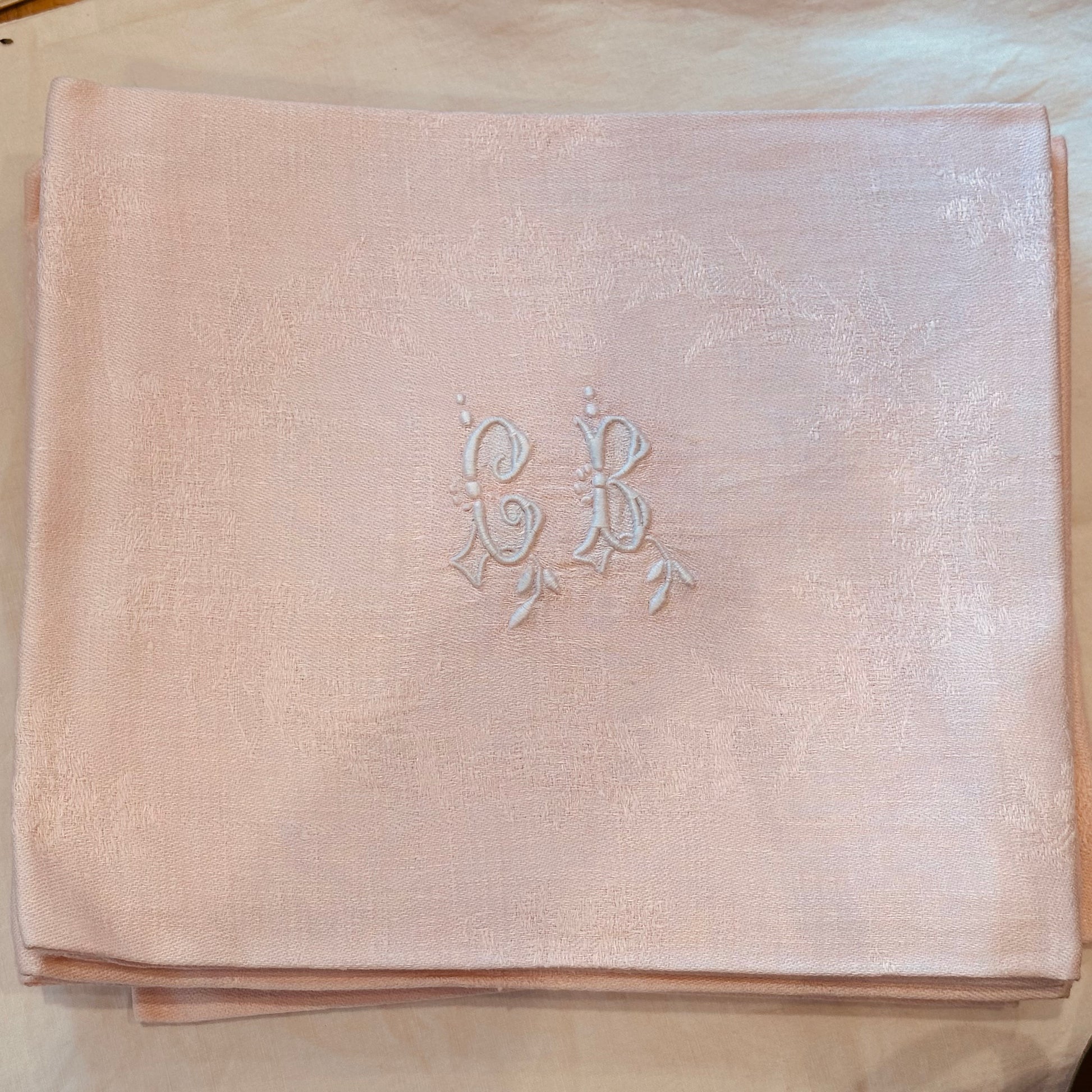 Large Vintage French Damask Napkins in Pale Pink