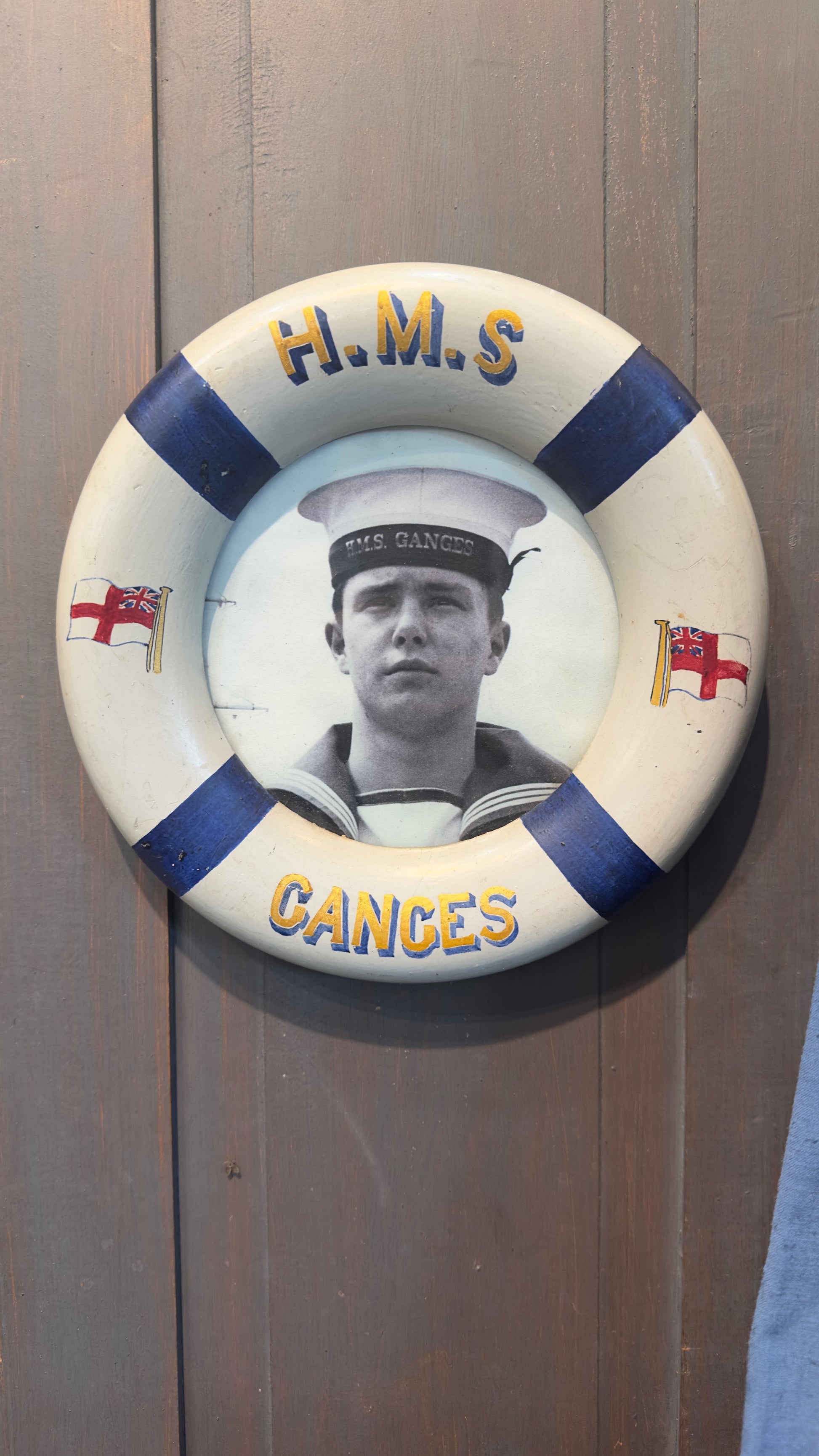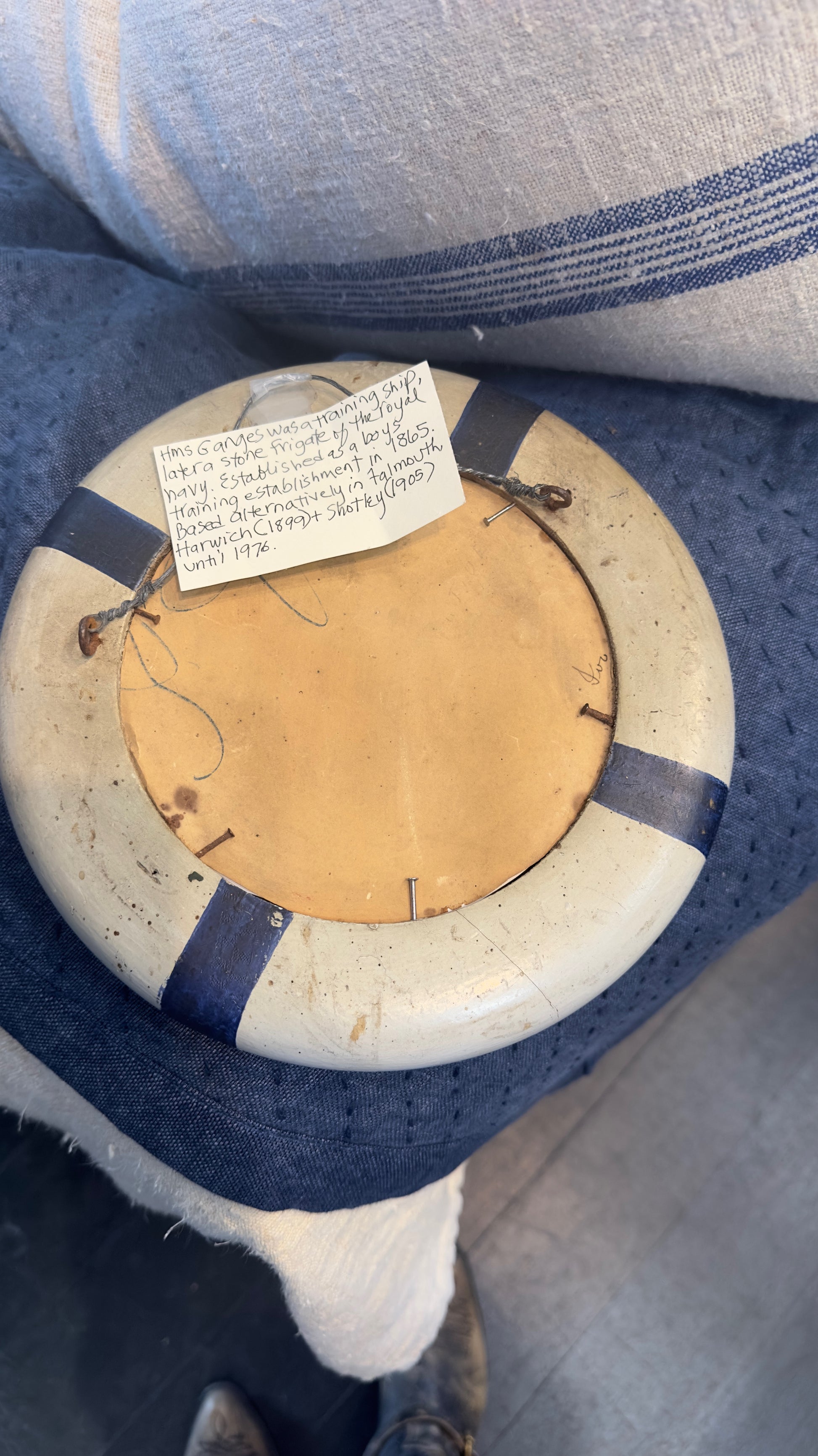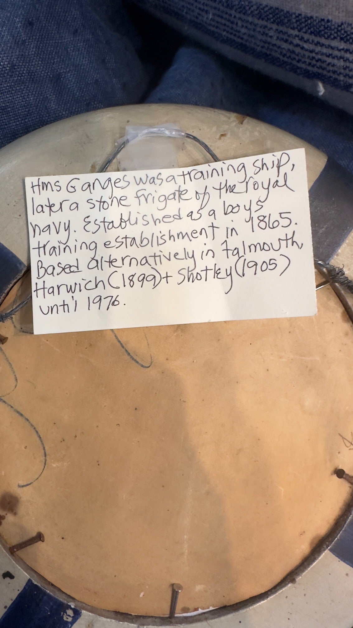H.M.S Ganges, see information on reverse. Hand painted, a collectors item. c 1910