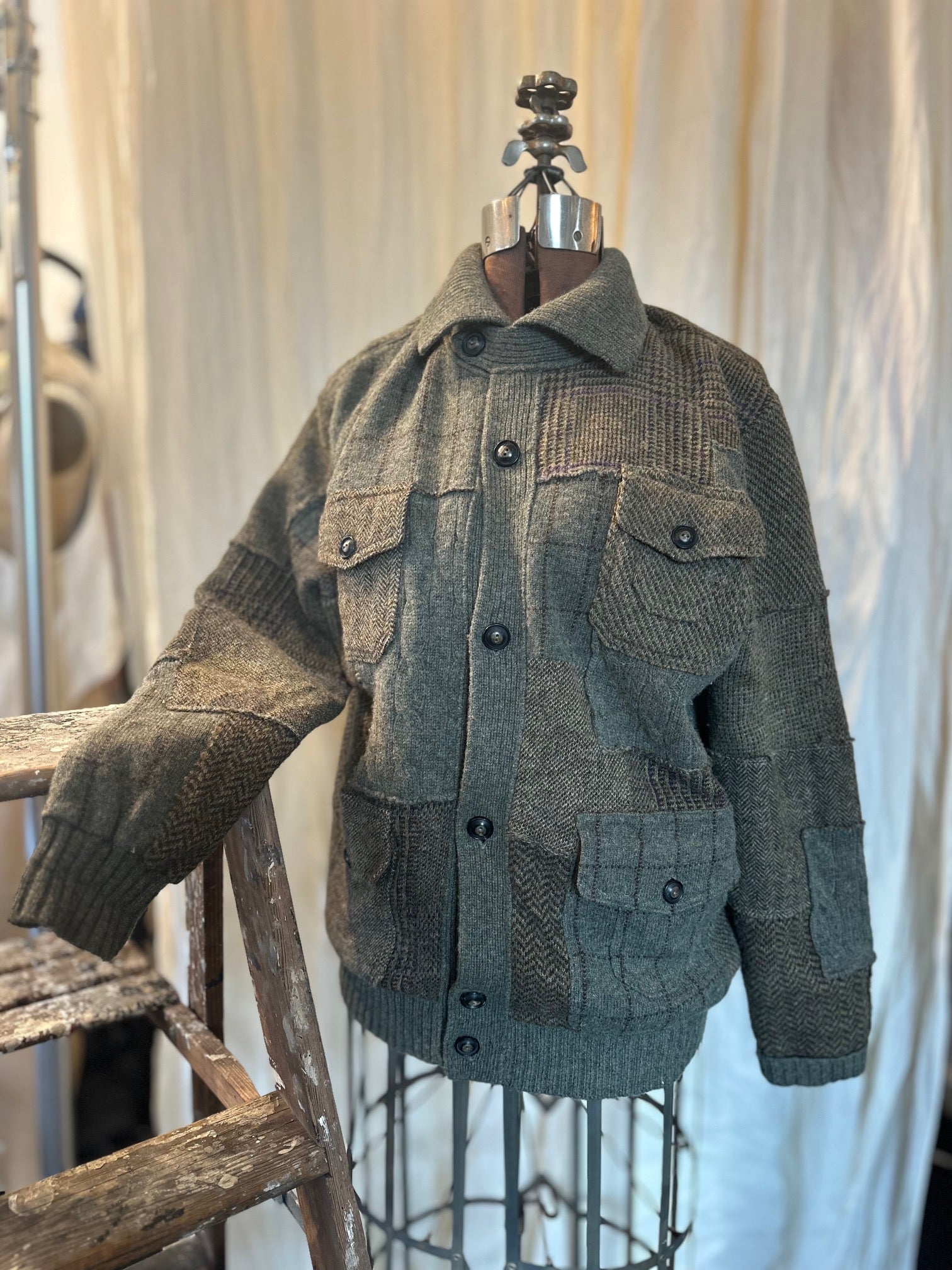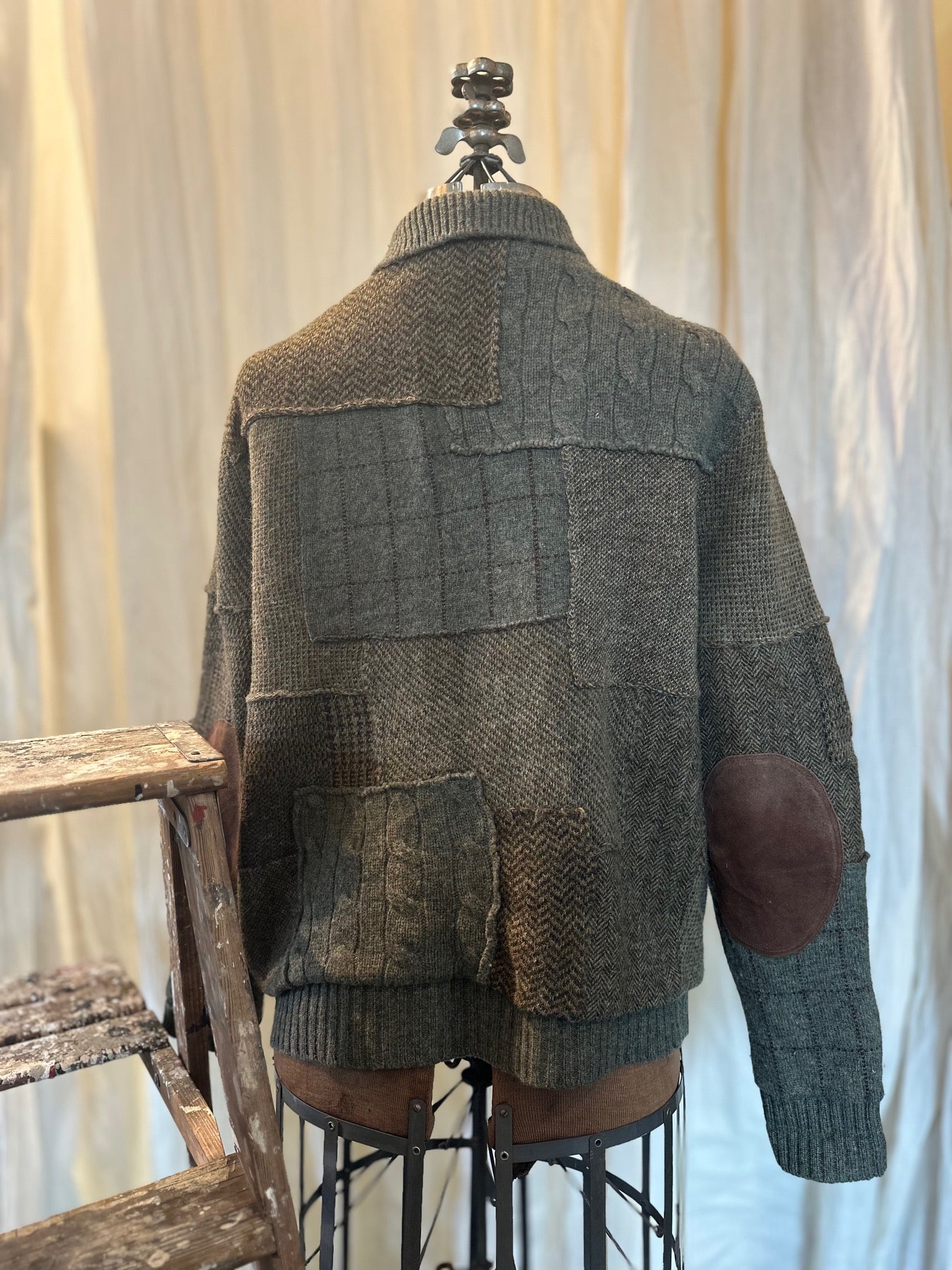 Ralph Lauren POLO Wool Cardigan, Patchwork, Army Green & Brown
