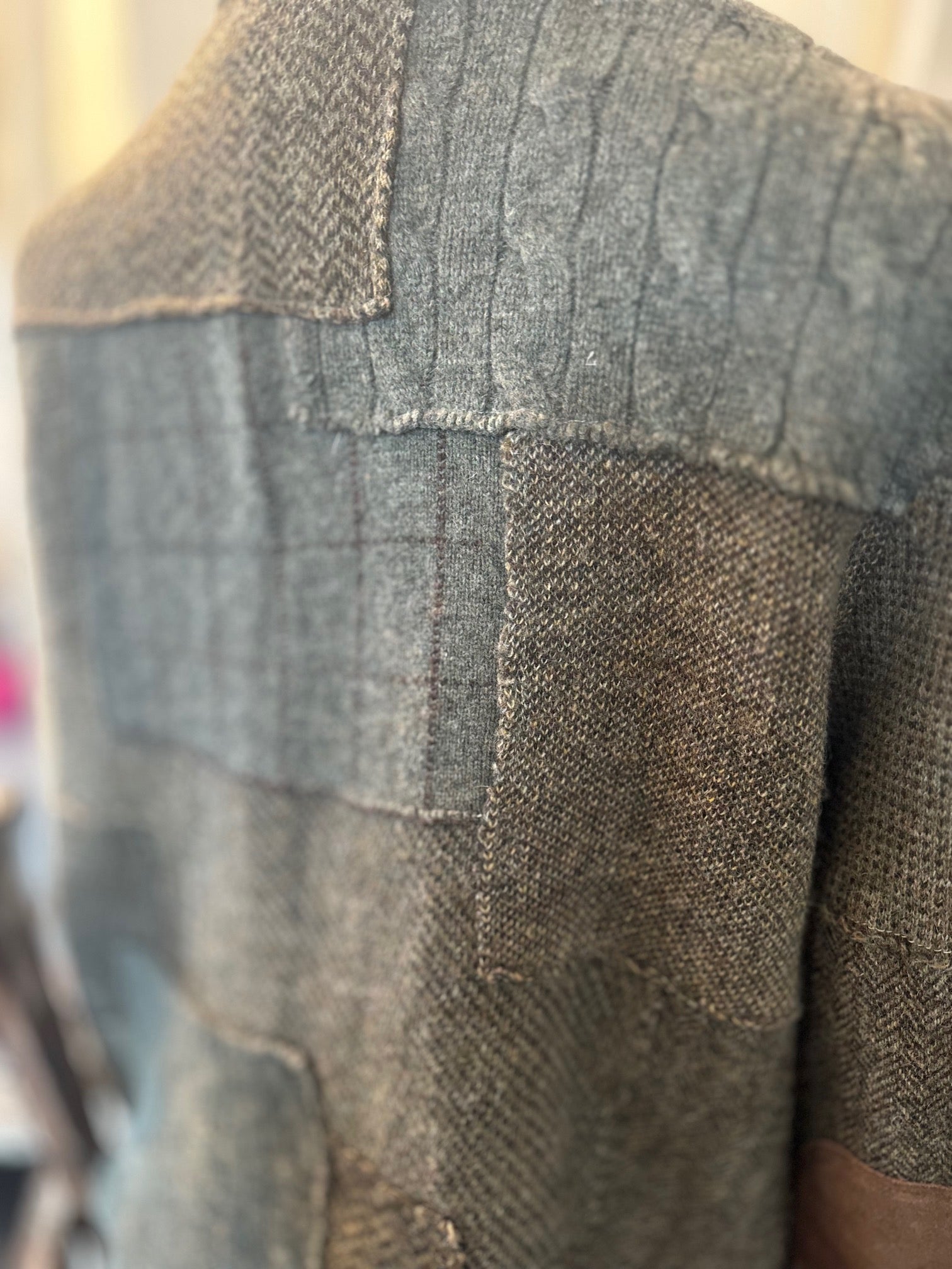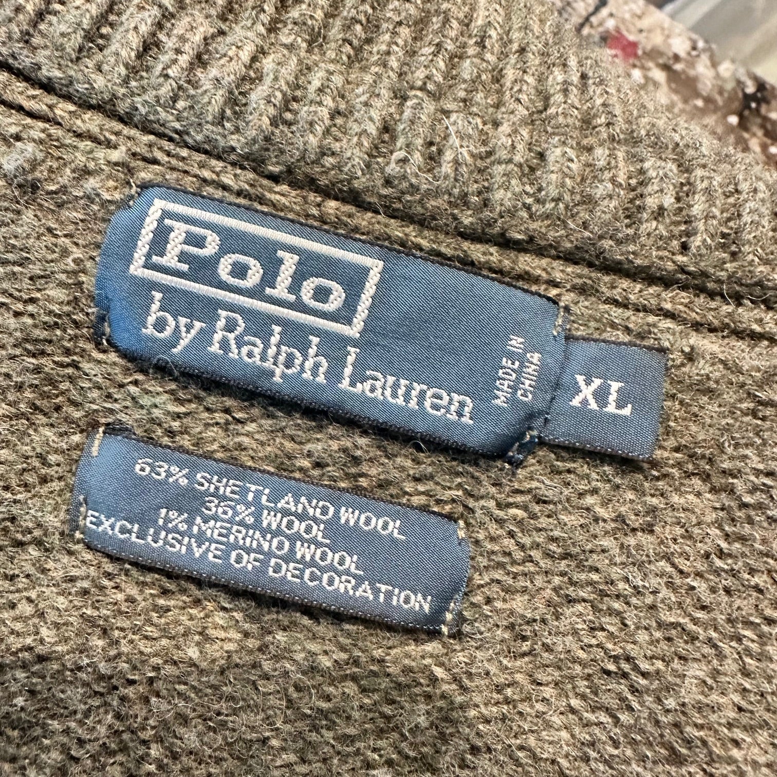 super cosy, mixed browns and greens, patchwork style cardigan, Polo Ralph Lauren.