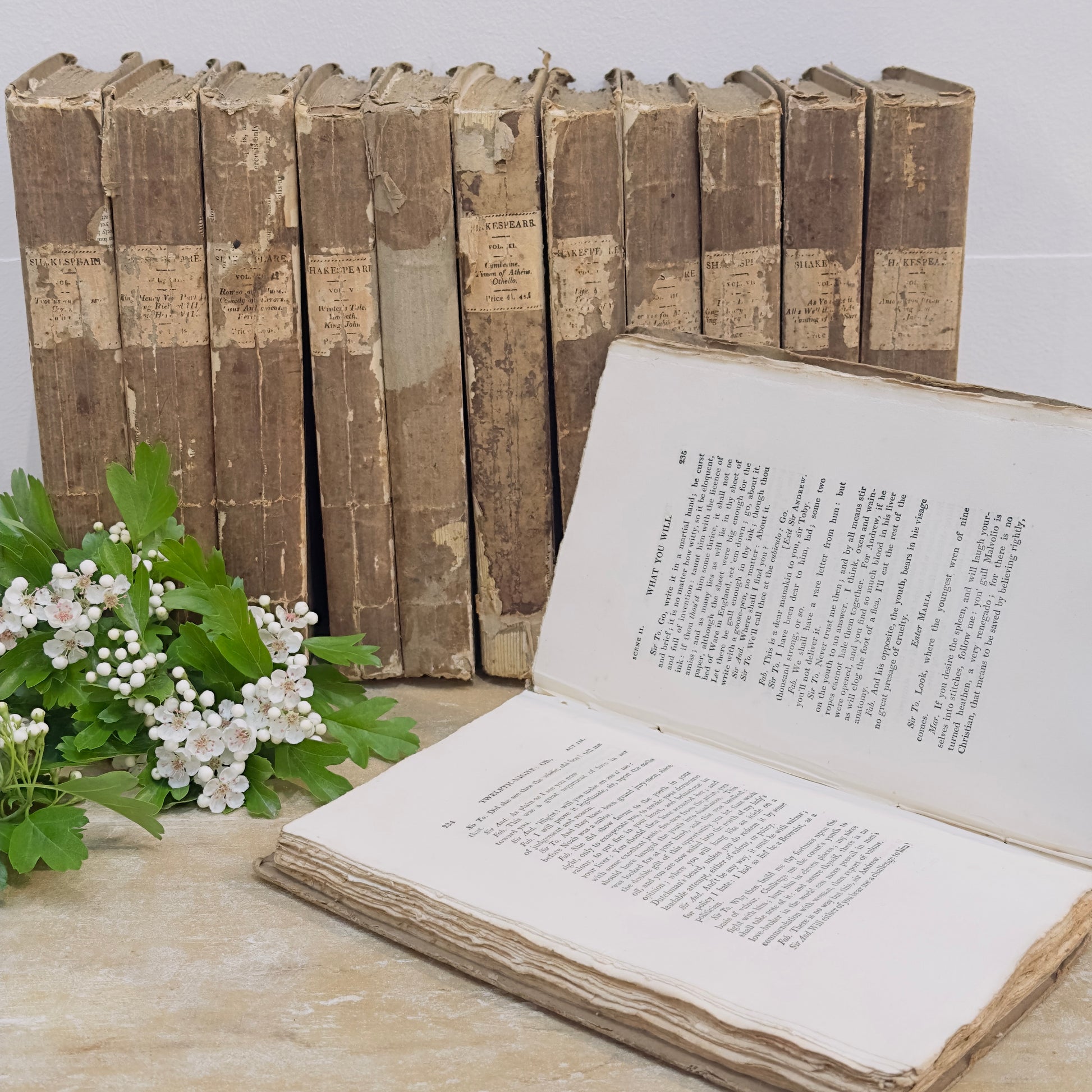 Wonderful shabby set of 12 volumes. English , printed 1823. Sharpe and Sons. The dramatic works of William Shakespeare